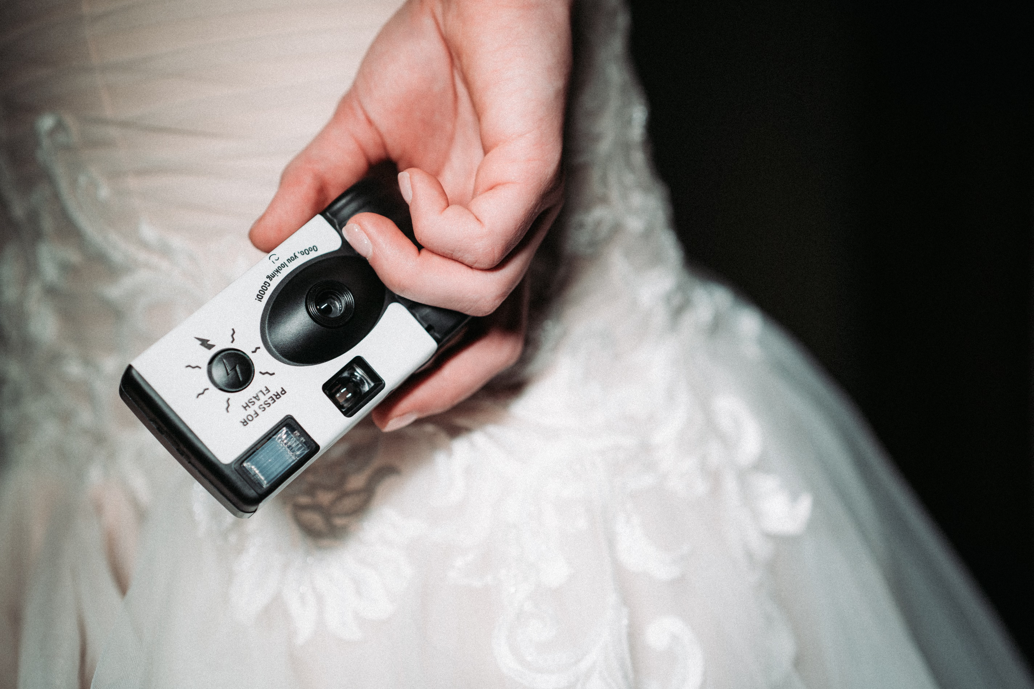 Enter disposable film cameras - An ode to the nostalgic film memories that crafted my parent's wedding album, the candids that shaped the stories that I heard over and over from my mom about their special day (Apparently my Grandpa had a missing shirt button that he was pointing to in every candid shot of him from my parent's wedding - that's just something you don't get in planned portraits 😂).